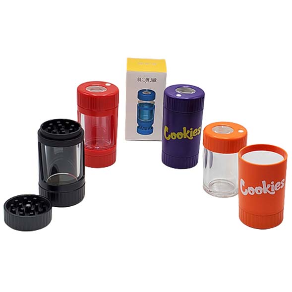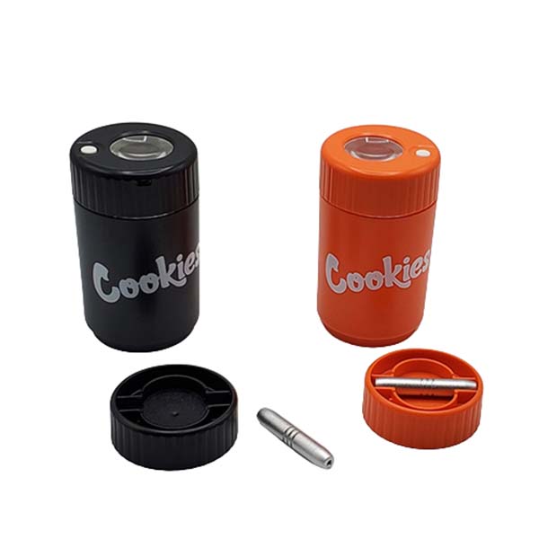 COOKEIES LED LIGHT RECHARGABLE MAGNIFYING STASH JAR WITH GRINDER