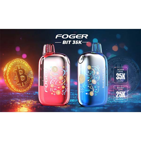 Means-while, the Foger Bit 35K still uses a transparent tank with internal e-liquid clearly visible. Smart Screen display can tell you battery level. Adjustable airflow is more suitable for people with different needs for suction resistance. Dual mode adjustable wattage output offers norm model with Bitcoin disappearing, up to 35K puffs and boost mode with Bitcoin displaying, up to 25K puffs. Dual Mesh Coils with constant voltage output ensures that coil's longevity and delivers the optimal burst of fresh and authentic flavor during the whole vape experience. Choose from 15 flavors, with more on the way.